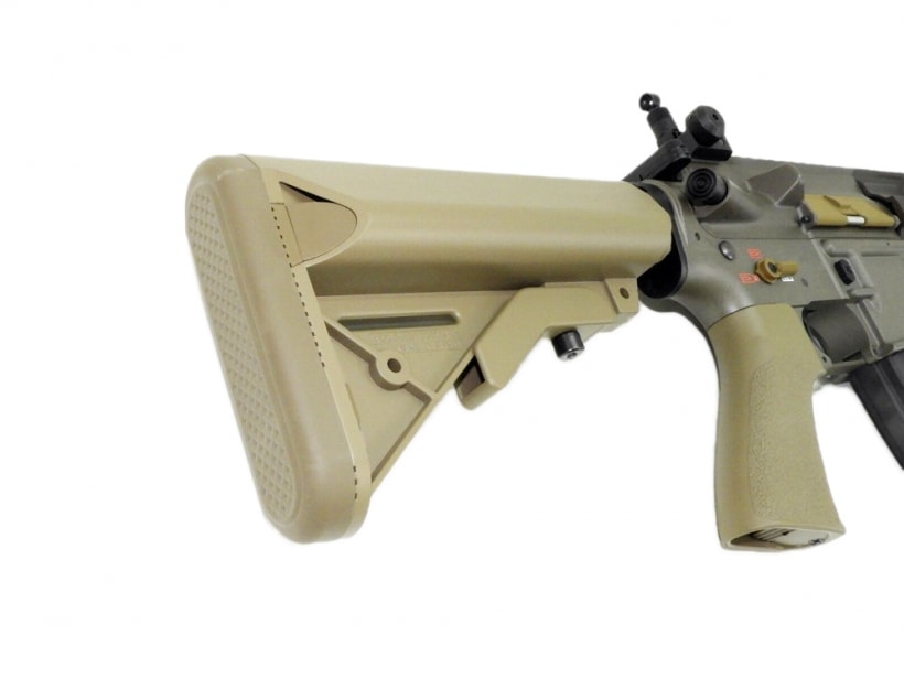 :レシーバーやアウターバレル、バッファーチューブ、フラッシュハイダーなど様々なパーツに金属素材を採用。ハンドガードがバレルに干渉しないフルフローティング・バレルを採用しながら、ゲームユースにも安心の剛性を実現しています。
