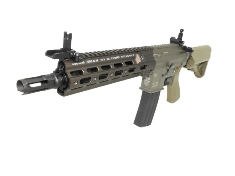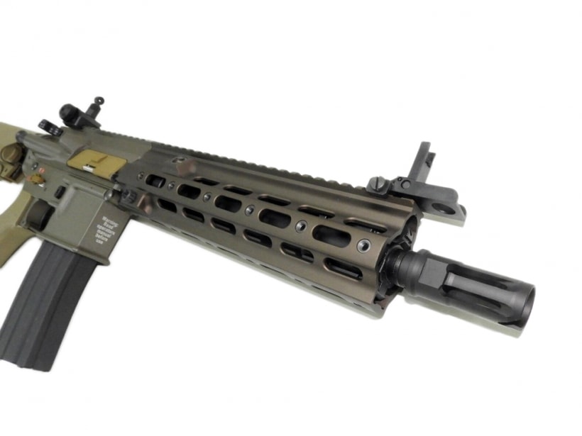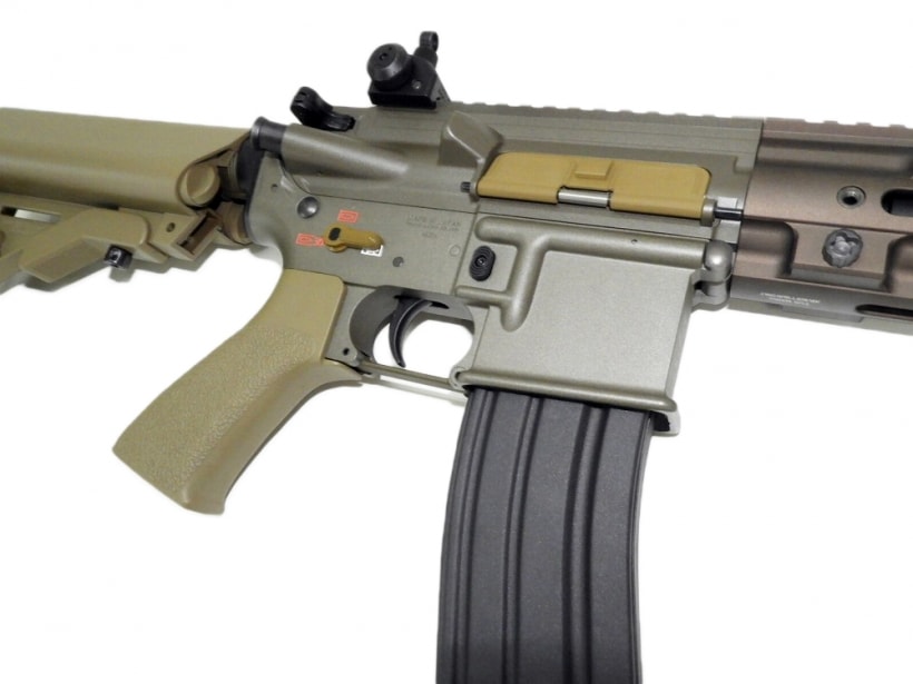 本物同様に、各部に施されたタンカラーの色調の違いを再現。金属製のハンドガードは、耐擦過性に優れたアルマイト処理によって色を再現しています。