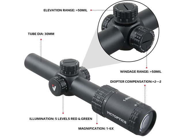 [VECTOR OPTICS] S6 1-6x24 ライフルスコープ ミディアム 1倍〜 ピカティニー Φ30mm イルミネーション OPSL22 (中古)の販売ページ|エアガン.jp