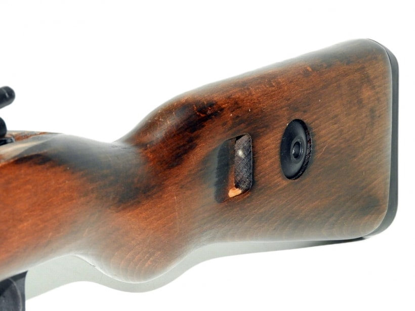 CAW製Kar98kによく見られる症状ですが、ボルトストップ部分が半開き状態となっています(理由は内部エジェクタースプリング テンションが強すぎる為