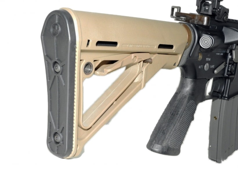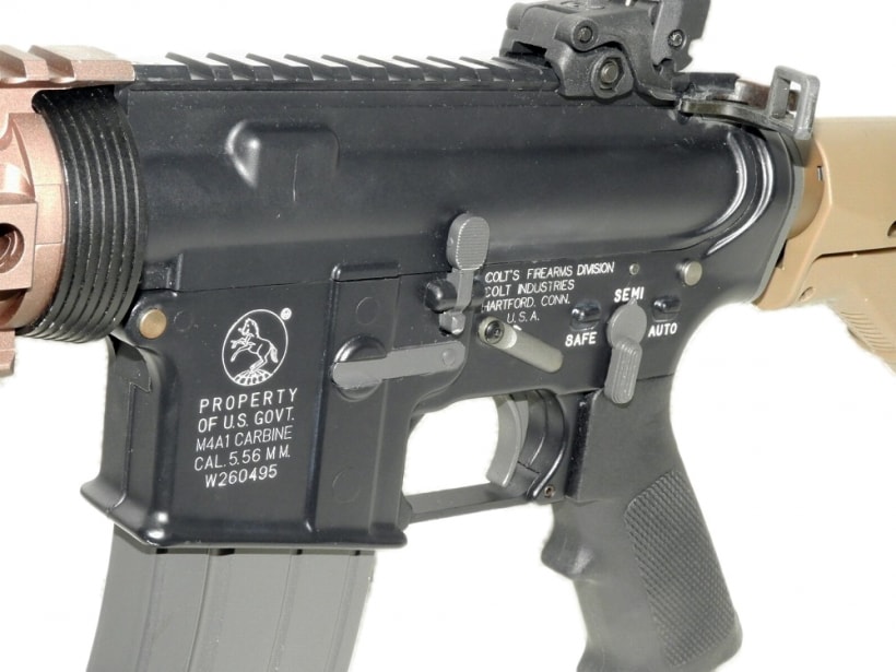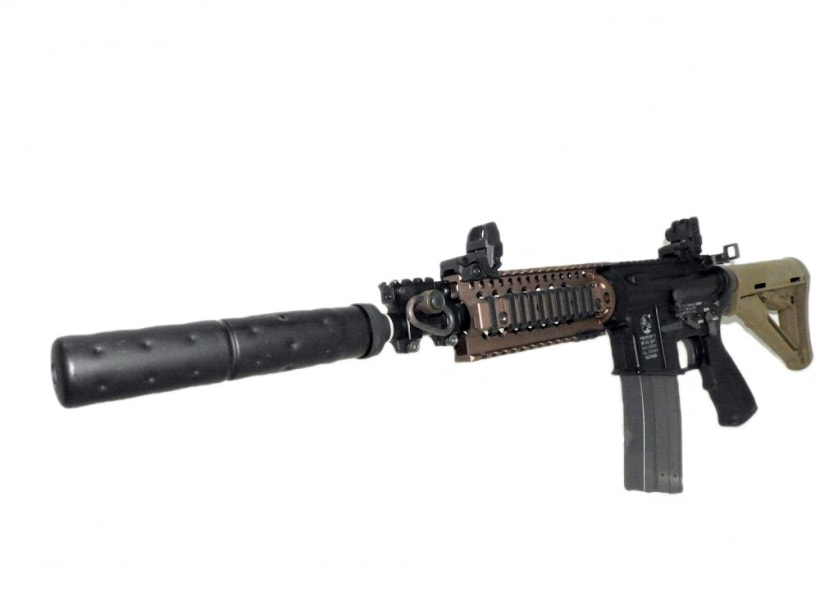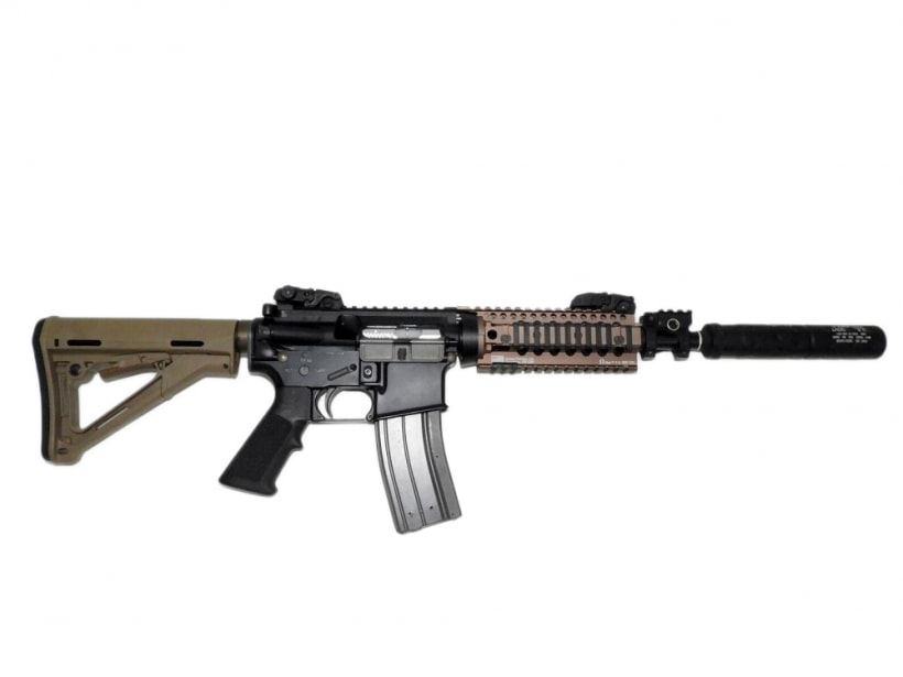 ハンドガードおよびストックをデザートカラーの物に交換し、更にサプレッサーとMAGPUL製サイトを装着したカスタム品。