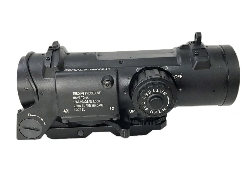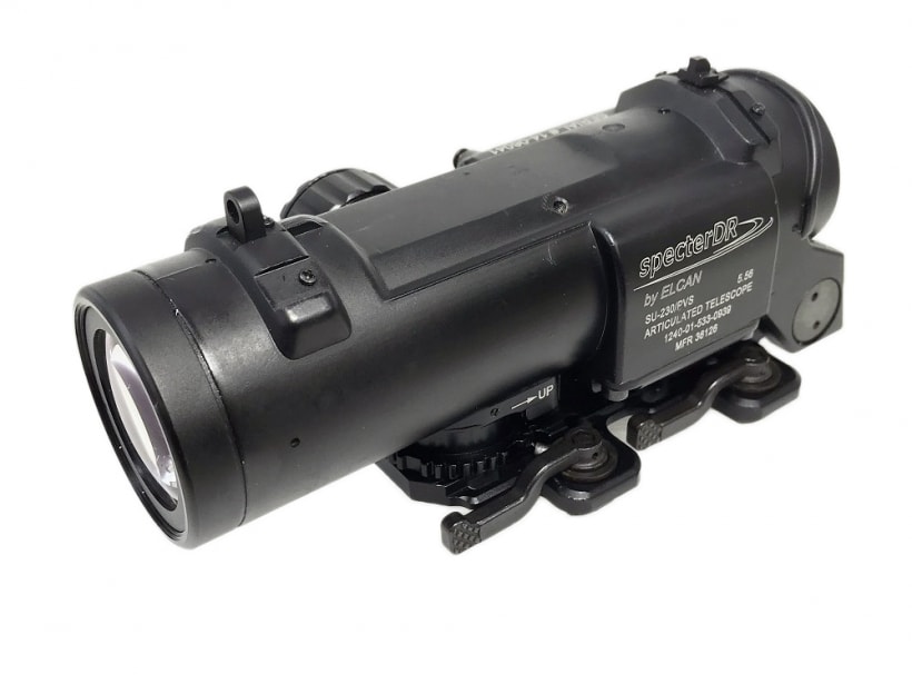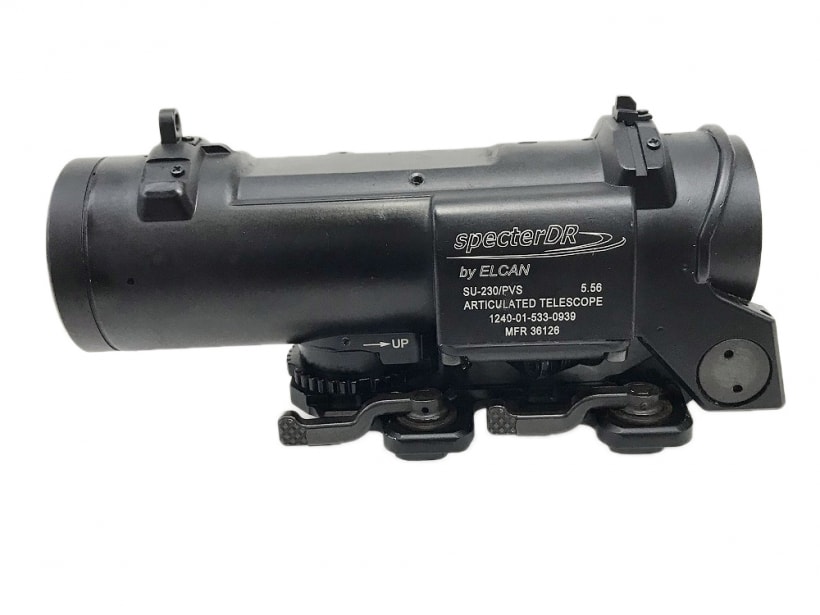 [NB] ELCAN SPECTER DRタイプ ショート 1倍〜 ピカティニー ビルドインマウント イルミネーション 刻印入り (中古) 製品参考画像1 ELCANプリント刻印入り。QDマウントで脱着もスムーズに行えます。