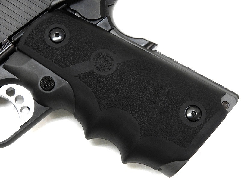 ハイキャパシティ(またはダブルスタック)フレームがデューティーユースに選ばれる理由は、45口径弾で14発、38口径弾であれば18発以上の多弾数化を図りながら、プルーフされた1911の優れた操作性と信頼感をそのまま生かすことができる点に集約されます。