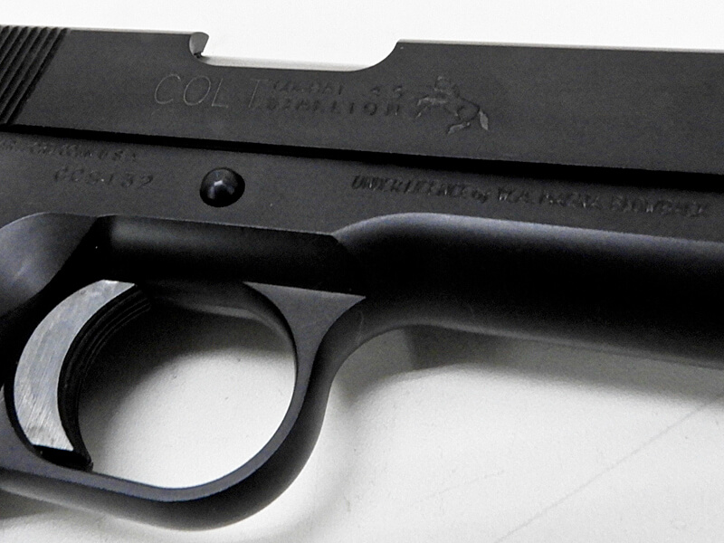 [MGC/新日本模型] コルト .45 コンバット スタリオン ブラック マグナブローバック 【ビンテージ】 (中古) 製品詳細画像4 刻印類。フレーム前方の刻印はWAのライセンスを得ていることを示すもの。