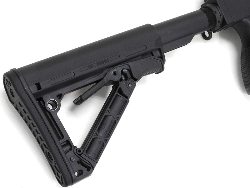 フルメタルレシーバ、ハンドガードで剛性は抜群。ストックはM4などに使用されるバッファチューブ、14mm逆ねじタイプのスレッデッドバレル、KEYMODを採用したハンドガードなど無数のパーツに幅広く対応!