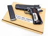 固定スライド時代のウエスタンアームズ製コンバットコマンダーベースのカスタムガン。発射自体は可能なものの弾道が不安定でまともに当てられません。実射するなら要・大調整の品ですが、スタッグ(鹿の角)とウオールナット(クルミ木材)を組み合わせて手作りされたグリップ、丸みのある形状に変更されたトリガーガード、塗装仕上げ、と、観賞用として十二分に楽しめるカスタムになっています。