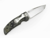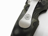 刃材はジェットエンジンのベアリング材である154CM鋼をストーンウォッシュ仕上げにしており、素晴らしい切れ味と頑強さを両立。ハンドル材はG-10素材をダマスカス鋼のような積層構造にした「G-Mascus」で、表面のステッピング加工は強力なグリップ性能と耐久性を持っています。