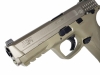 昼夜を問わずサイティングしやすいハイブリッド・ナイトサイトを採用し、ボディをフラット・ダークアース(FDE)に仕上げた「M&P 9 Vカスタム」が、ガスブローバックシリーズに登場!