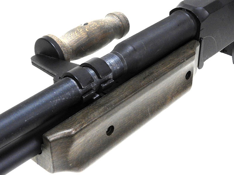 ストックとキャリングハンドルは木製になっています。