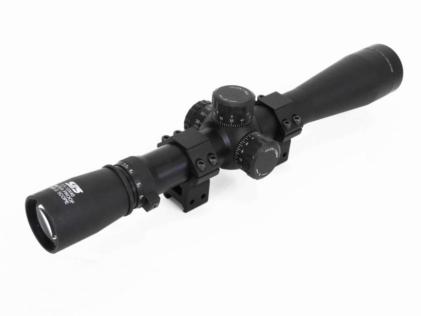 コスト・パフォーマンスに定評があるSIIS(エスツーエス)の10倍までカバーしたライフルスコープ。マウントリング付き。