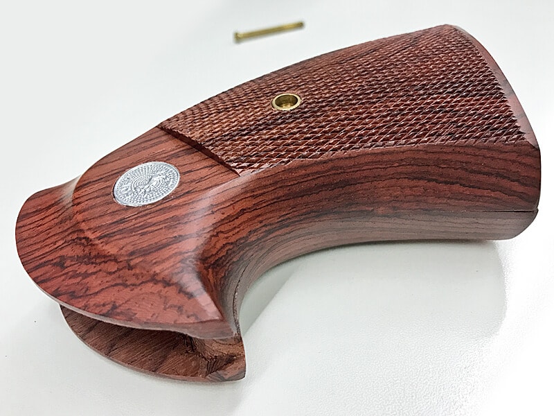 [ノーブランド/米国製] コルトパイソン用 木製オーバーサイズチェッカーグリップ 実銃用→タナカ用に加工済 (未使用)の販売ページ|エアガン.jp