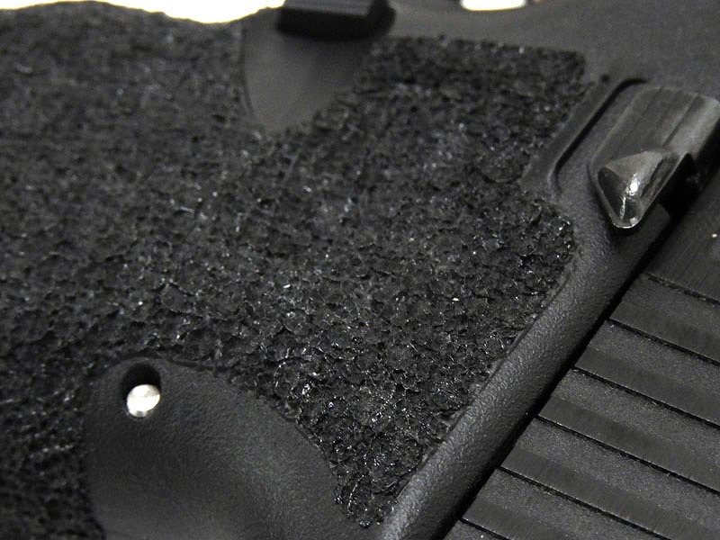 フレームにはシルバーのカスタムピン。エキストラクターは別パーツとなっている。マガジンにもグロック刻印入。