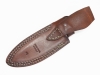大きめのブレードであらゆる用途に適したブッシュクラフトナイフ。刃材には「スレイプニル」鋼材、柄材にはサントスウッドと高級素材を用いており、丈夫な本革製シースが付属します。