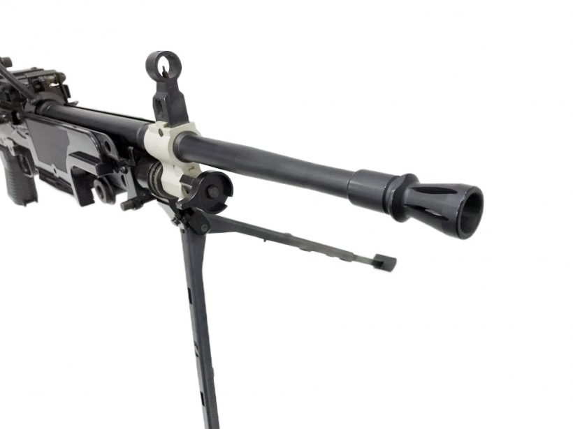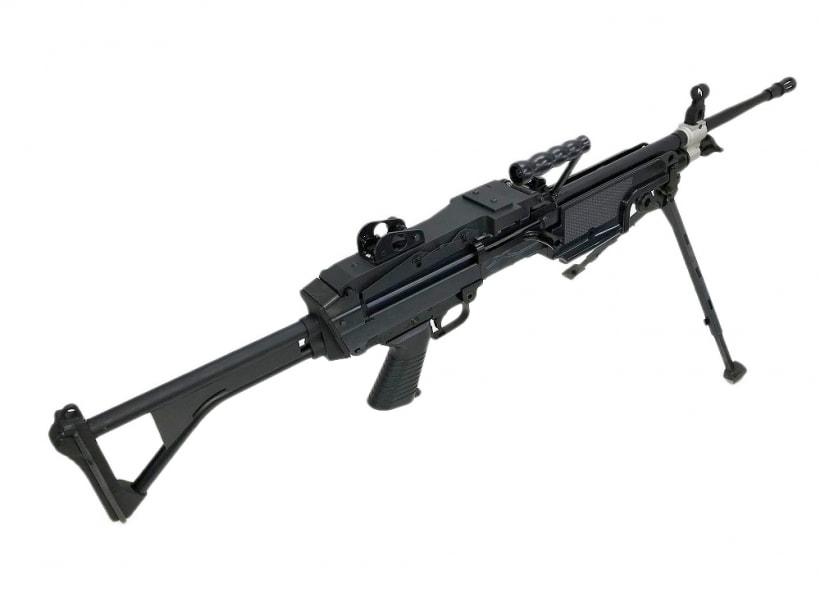 SAW(分隊支援火器)の決定版。歩兵120人分の火力を持つといわれ、5.56の弾薬を使用するため、M16などのマガジンも使用できる。
