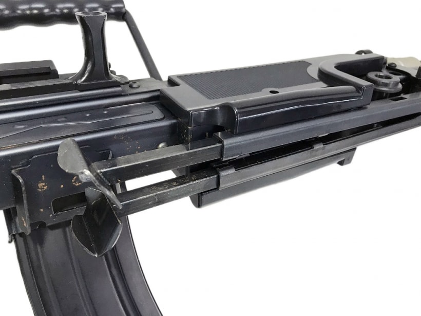 ほとんどのパーツが金属性でできており剛性は十分で、実銃同様かなり重く作られている。