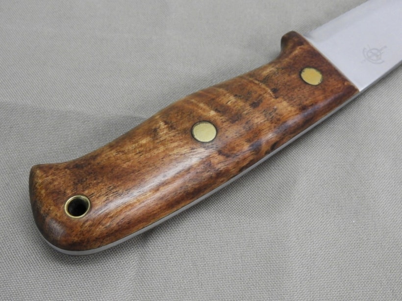 短い幅広のブレードにしっかりとした太いハンドルを持つ「ワバキミ」。ブレードが背側のみ貫通しているハーフタング構造です。