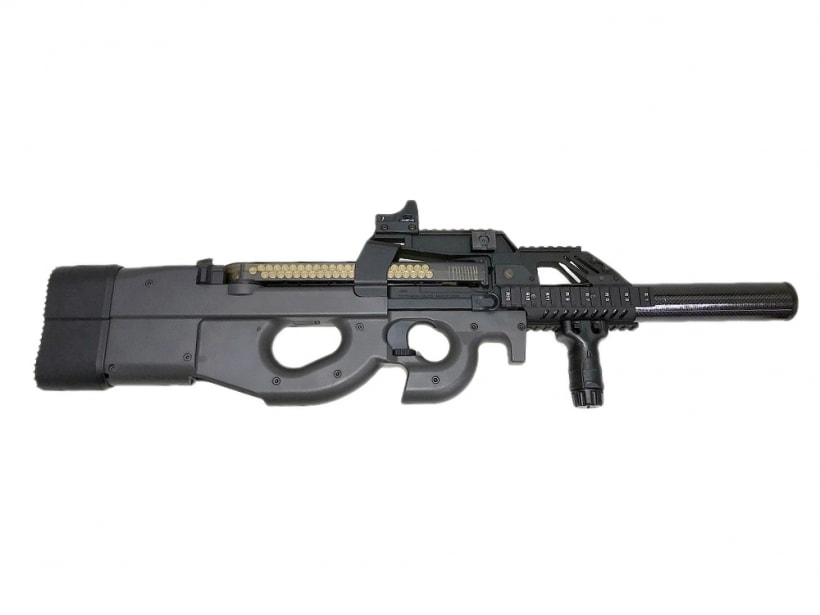 高性能サイレンサーとスコープマウントベース、フレーム左右に短い20mmレイルを標準装備し、高い拡張性を重視したP90のバリエーションモデル。