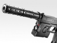 最初から様々なオプションがついている楽しいモデルである。サイレンサーにフラッシュライトがガンケースに収められている。スライドは固定タイプではあるが手前に引っ張ると動作させることはでき、初弾を装填する雰囲気を味わうことができる。細部のメカニズムを徹底的に再検証することにより、“充分な飛距離&命中精度を叩き出しながらも、スムーズなトゥリガープルを楽しめる”という、軽快な操作感覚を実現している。