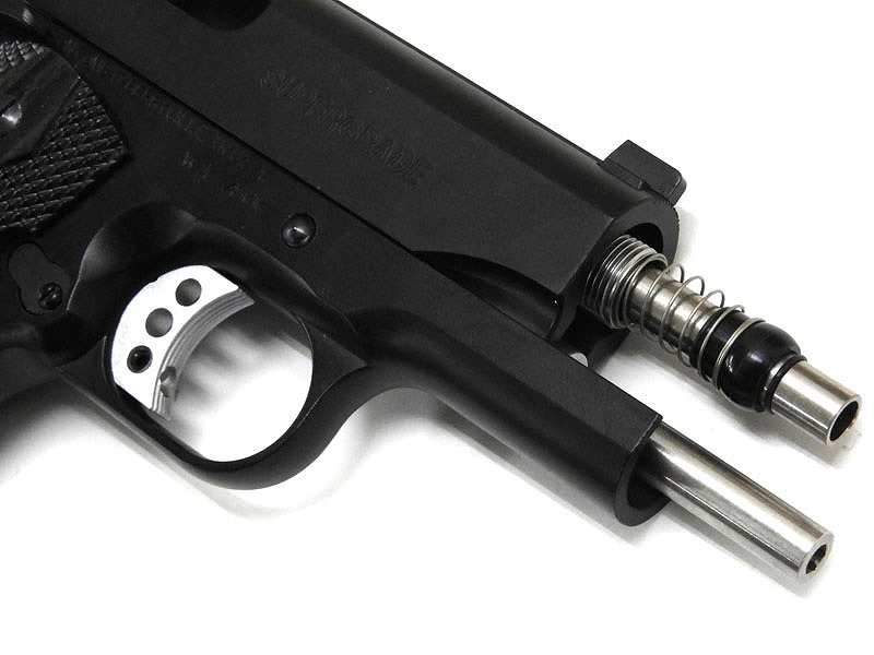 コンパクトなブレットプルーフ・スライドストップやリコイルスプリングガイドロッド先端のヘキサゴンモールドなど