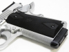 シリーズ70の刻印とリアサイトに装備されたボマーサイトはスポーティーな印象を受けます。そして本来HWの地肌が見えるようになっているはずですがシルバーに塗装されクリアも載っているので艶がありきれいに見えると同時にホーグの実物ラバーグリップが最高のグリップを発揮してくれている一丁になっている。
