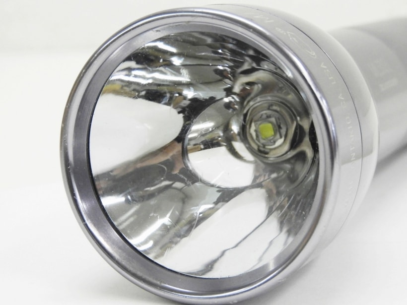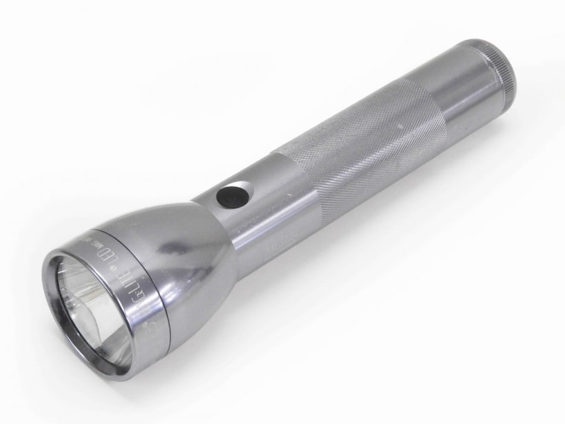 懐中電灯の代名詞的存在マグライト。単一電池2本を用いる大型のモデルで、現行の3CELLモデルと比べると長さもやや短いですが最強クラスの光量と照射時間を誇ります。