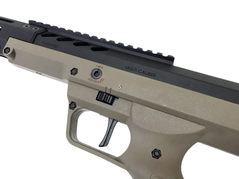 航空素材グレードアルミCNC加工にて制作されたSRSモノリシックレシーバーは、Desert Techが特許を取得した新しいバレルマウントを備えたバレルにより均一に固定されピークストレスポイントを低減。