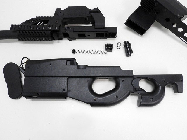 P90のスタンダード電動ガン。インナーバレルがないようです。その他欠品などある可能性もございます。