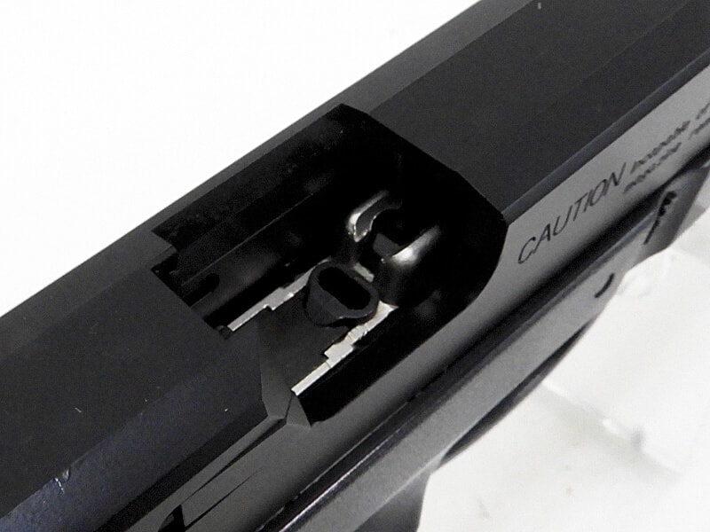 フロント・リアサイトは白○でマーク有。ストライカー式なのでハンマーの露出はなし。