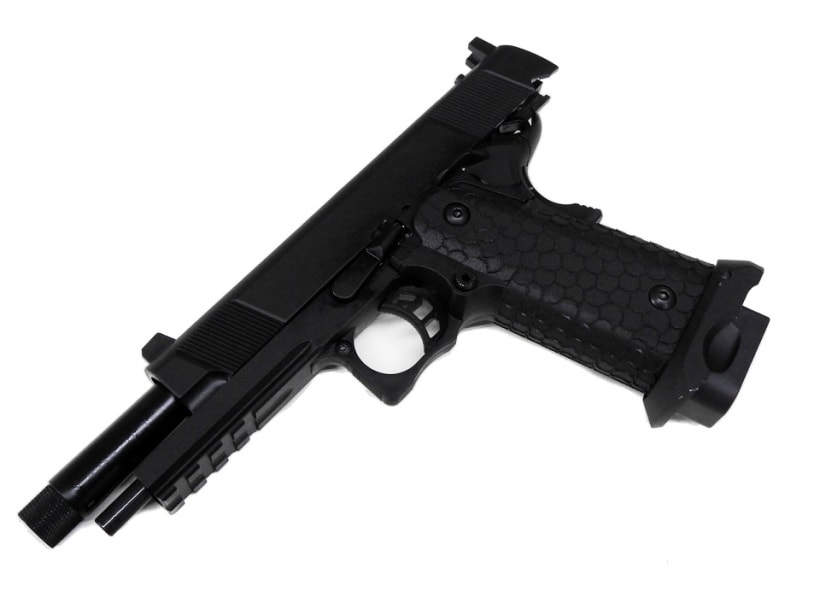 ダブルカラムのハイキャパシティマガジンを持つ2011系モデル。実銃に即して4mm逆ネジ付きアウターバレル(ショートリコイルキャンセル)でトレーサーなどを装着可能であり、また、リヤサイトカバーを外すことでダットサイトスライド直付け可能(リコイルが強い為実銃対応ダットサイト推奨。)