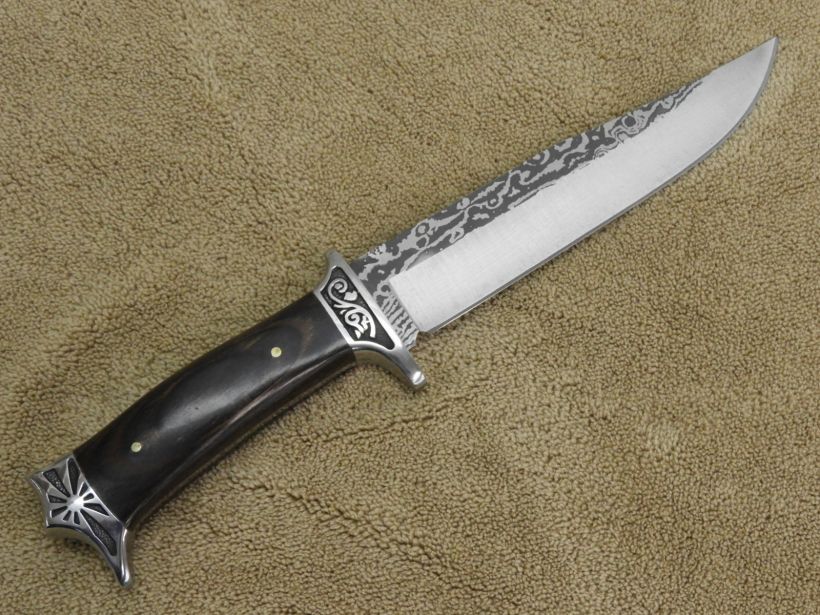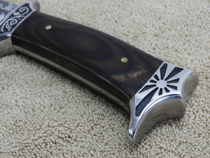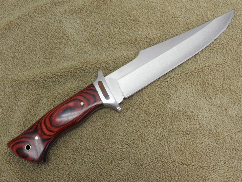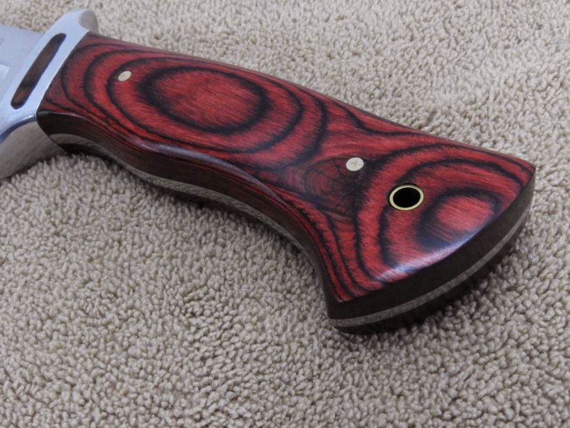 赤いラミネートウッドのハンドルが美しいSA33、ダマスカス鋼風のブレード文様やヒルトのデザインが凝っているSA42。いずれも頑丈な厚刃のフルタング構造でかなりの存在感がある。