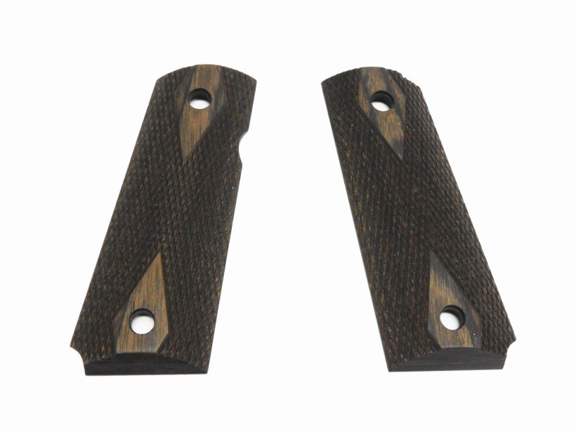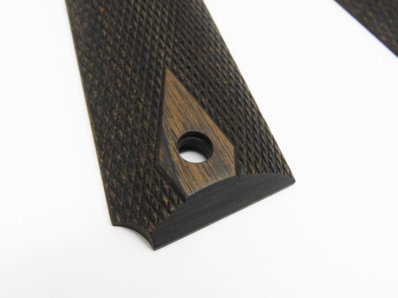 [メーカー不明] M1911 ディフェンダー用 木製グリップパネル ダイヤチェッカー ダークブラウン (中古) 製品詳細画像1
