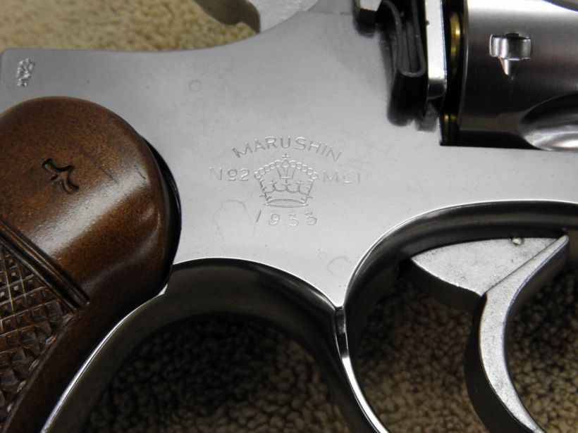 RSAFが製造したダブルアクションの中折れ式回転式拳銃をマルシンがモデルガン化。クラシカルで味わい深いフォルムを再現。カート6発付属。