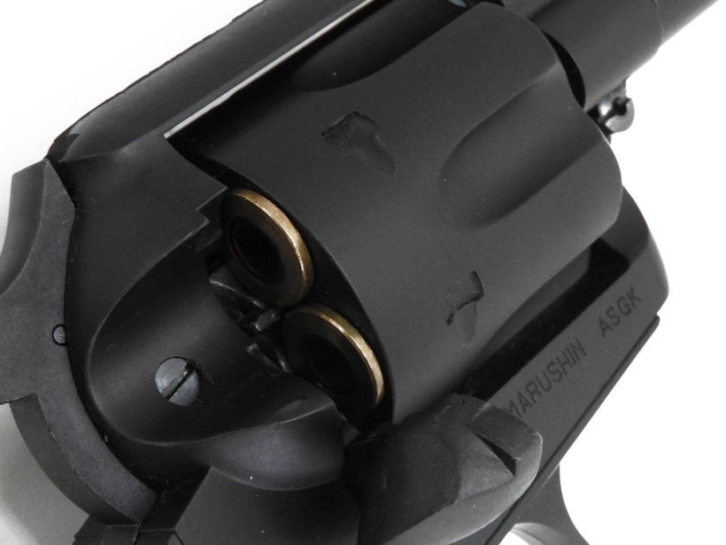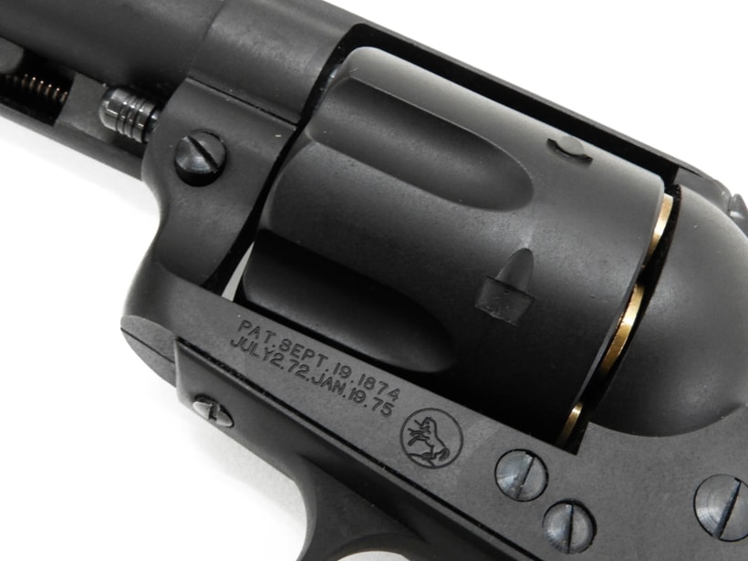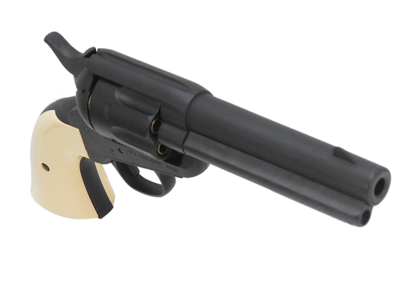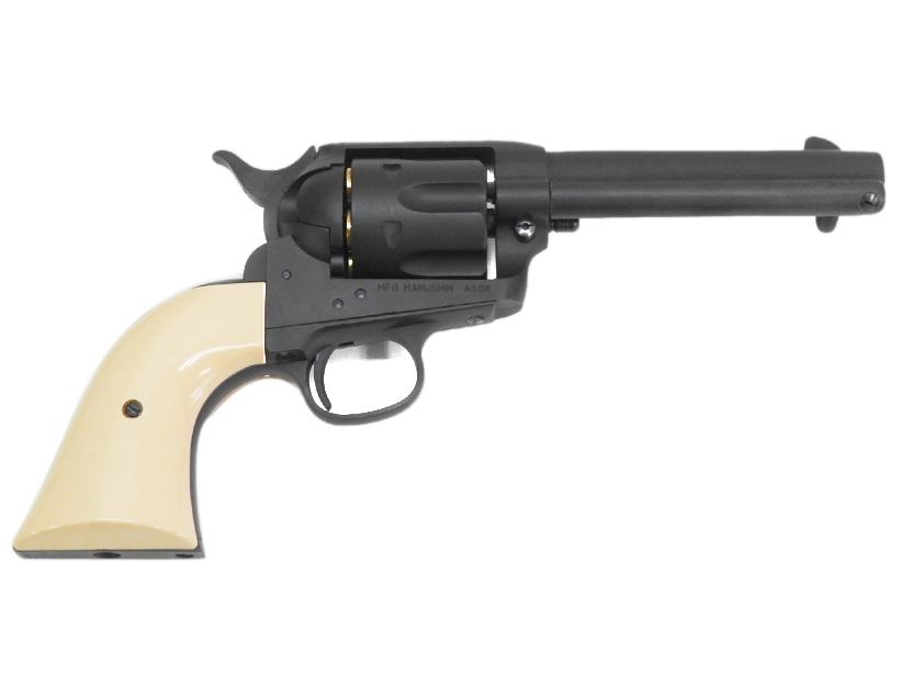 シングルアクションアーミーのうち民間向け.44-40口径モデルの「フロンティア・シックス・シューター」。シックス・ガンとも呼ばれた西部劇に欠かせないアイテム。マルシンから登場したカート式リボルバー、HWモデル。
