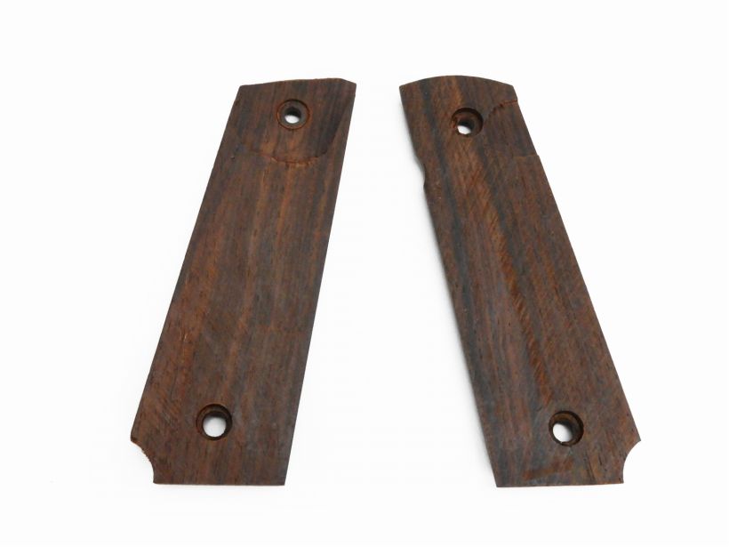 ココボロ材のような木目のコルト・ガバメント/M1911用グリップパネル。スムース仕上げ。メーカーや材質、適合機種は不明です。