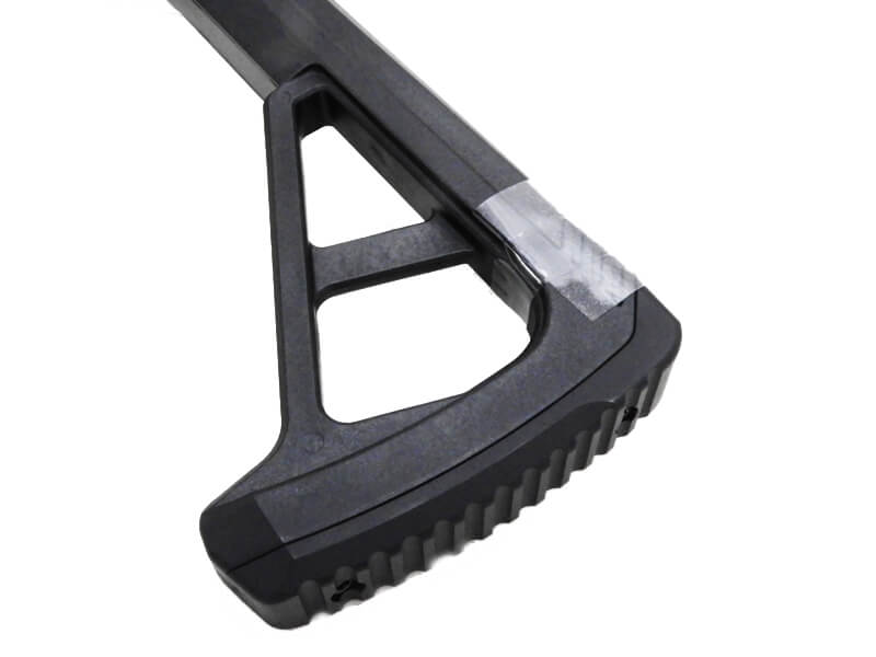 ストック本体には強化プラスチックを使用しストック基部には別売の「QDスリングスイベル」に対応したQDホールを備えています。