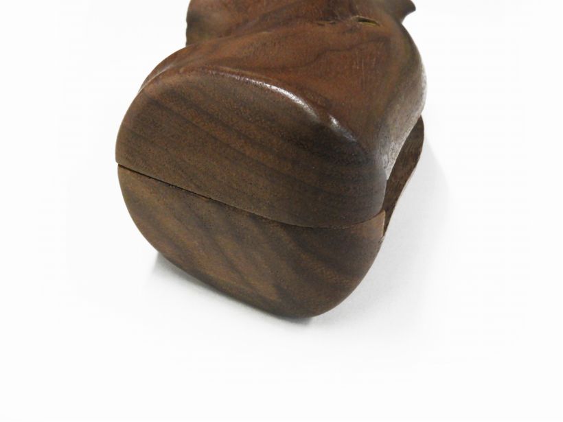 棍棒のような握り心地の木製グリップパネル。フィンガーチャンネルは浅めで、前後幅に比べて厚みがかなりあります。