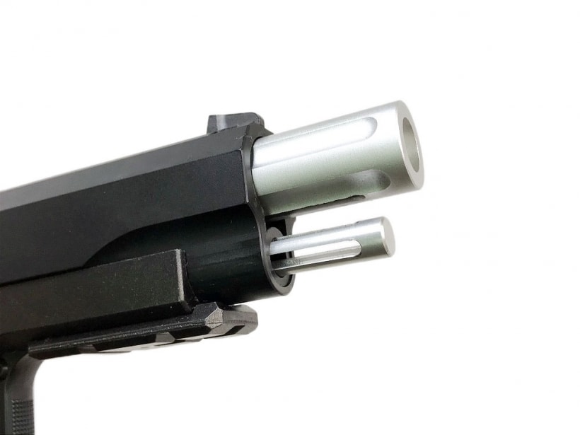 スライドには重量弾「.45ACPミリタリーボール+P」への対応を想定した角型ヘヴィタイプを採用。また、ピカティニー規格(20mm幅)のアンダーレイルが付属し、各種フラッシュライトを装着可能なタクティカルスタイルと、レイルレスのスポーツスタイルを選択可能なオールマイティモデルとなっている。