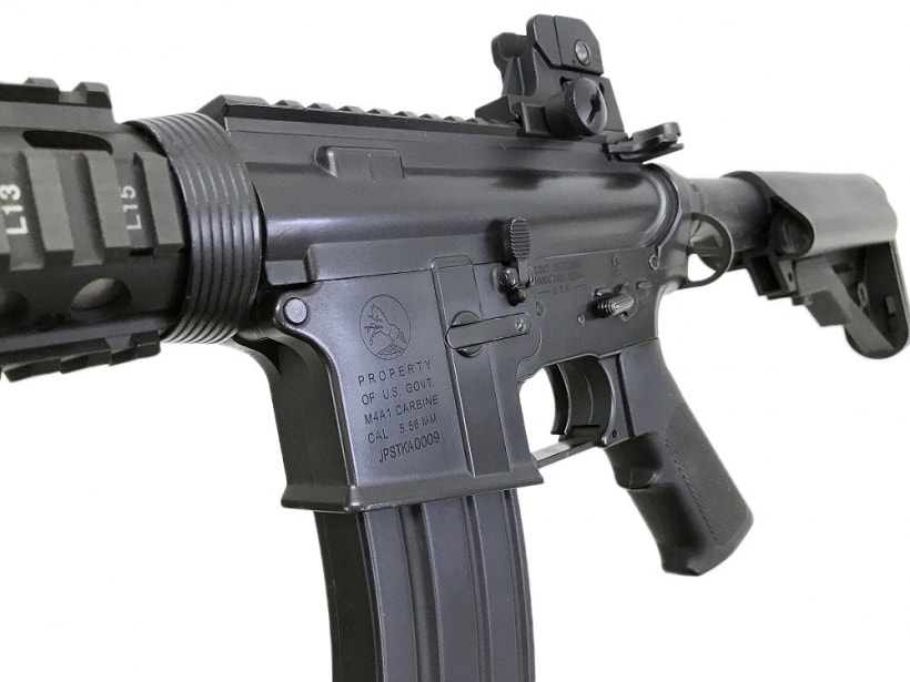 フレームにCOLT M4彫刻が施されたクレーンストック仕様のフルメタル電動ガン。