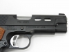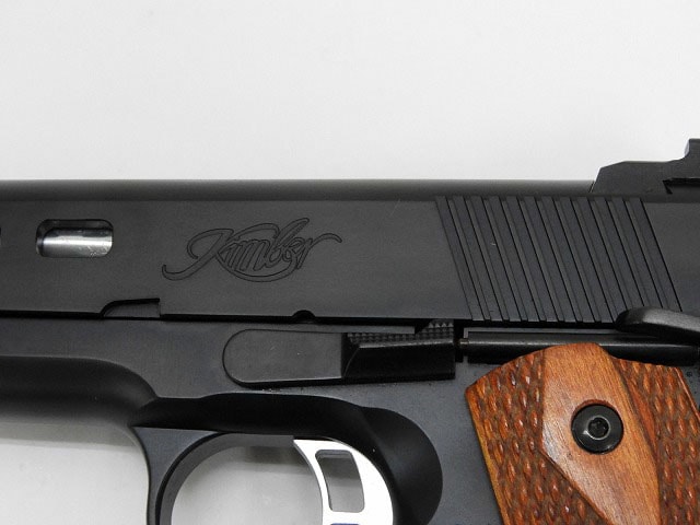 キンバープロキャリーモデルをベースにグリップの全長をオフィサーズサイズに変更。このモデル最大の特徴であるスライドには軽量化のための肉抜き加工だろう。あえてスライドを短くしすぎないようにしながら軽量化を実現させるための選択だ。グリップは積層強化木材パッカーウッドグリップが標準装備。マグウェルも装備するなど豪華仕様!!
