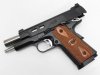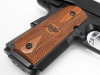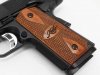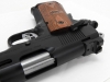 キンバータイプのウッドグリップとライトニングカットのカスタムスライドを搭載した、アグレッシブなコンパクト1911。
