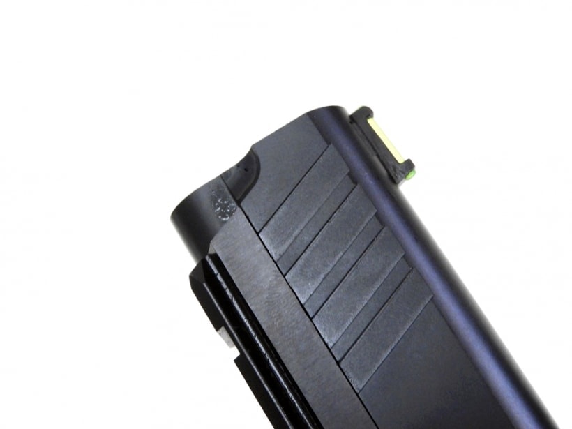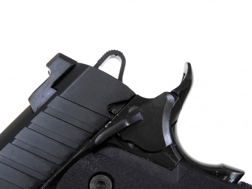 ・リアサイト前方部はコッキングショルダーの機能も兼ねており、スライド上部を逆手に握った際に有効。