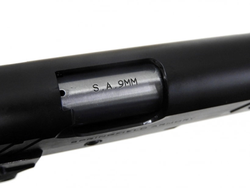 ・ブッシングレスのブラス材削り出しのブルバレルをはじめとして、9mmの打刻とカートリッジインジケーターが再現されたメタルチャンバーカバーを装備。