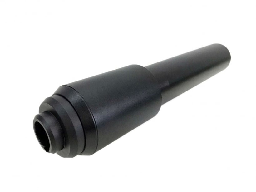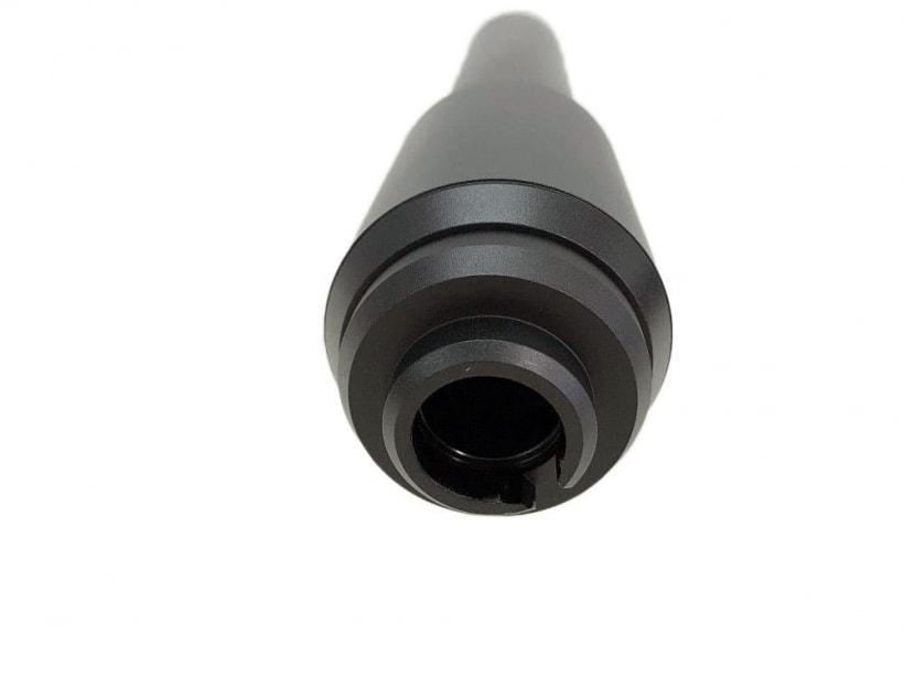内部には吸音材やバッフルなどが入っていないため減音効果は期待できないものの、内部に14mm逆ネジのスレッドが切られている箇所があり、東京マルイ製フルオートトレーサーをすっぽり内蔵できるよう設計されている。