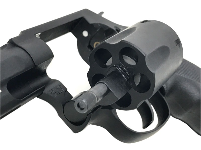標準では.38splカートリッジが付属しているが、パイソン・M19などで使用している.357Magカートリッジも使用可能。