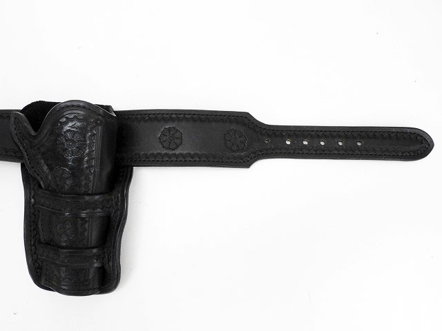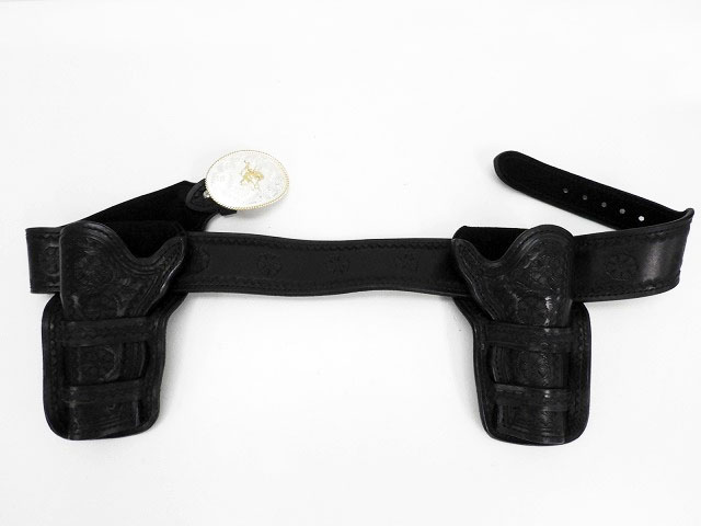 ウェスタンホルスター2個付きの本革ガンベルト。SAA用。キレイな模様入。