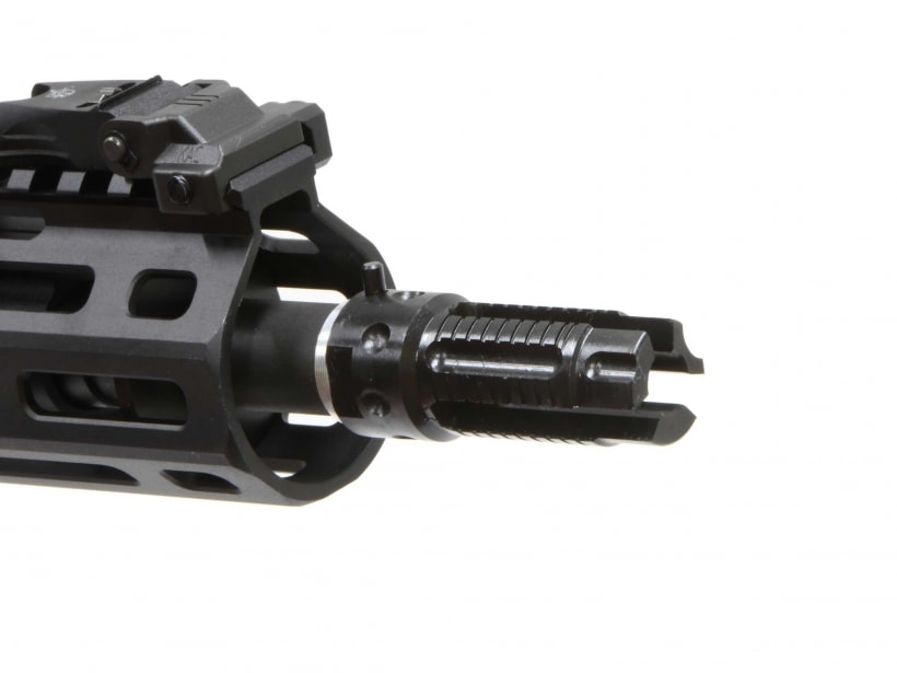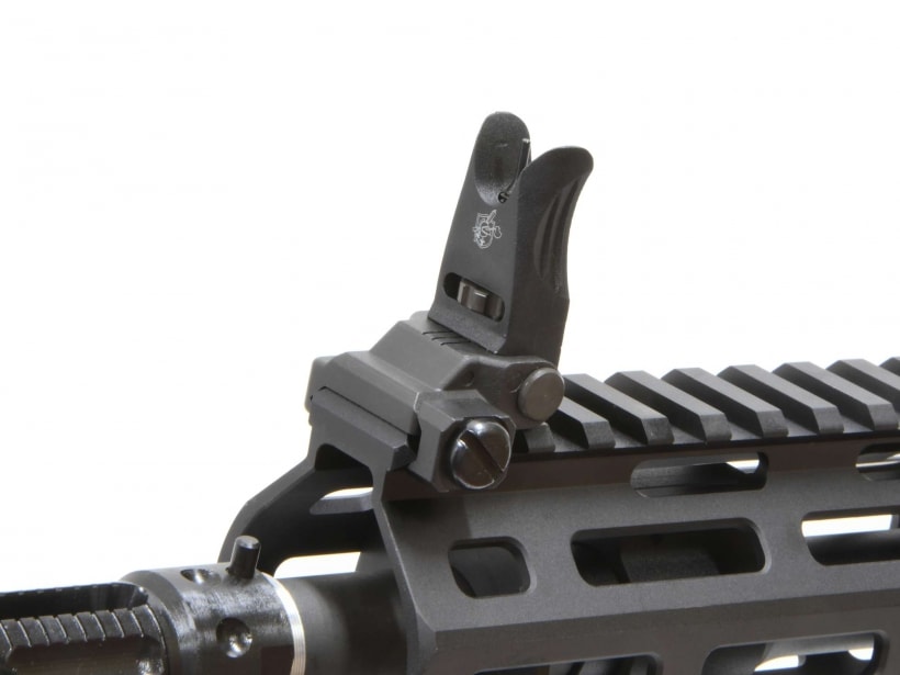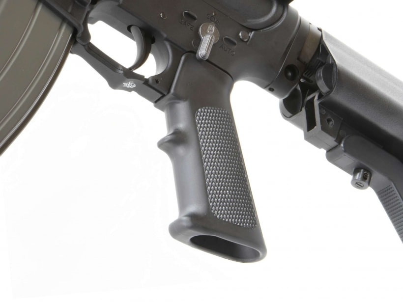 VFCと実銃メーカーKnight's Armament Company (KAC) 認可ライセンスによりSR-16を細部まで緻密に再現。アルミレシーバーはもちろんボルトキャリアに至るまで、KACの公式ライセンス品となっており、シリアルナンバータグもしっかり付属する。また、セレクター、マグキャッチ、ボルトリリースは利き手を選ばない両利き仕様(Ambidextrous)で、グリップもリアルサイズのA2グリップを装備。他にも600mフリップアップMicroリアサイト、フォールディングMicroフロントサイト、QDCフラッシュハイダー(14mm逆ネジ)、ガスブロックにはHOP調整可能なクイックHOPアジャスト機構搭載を搭載しており、ゲームユースにもうれしい充実の仕上がりになっている。