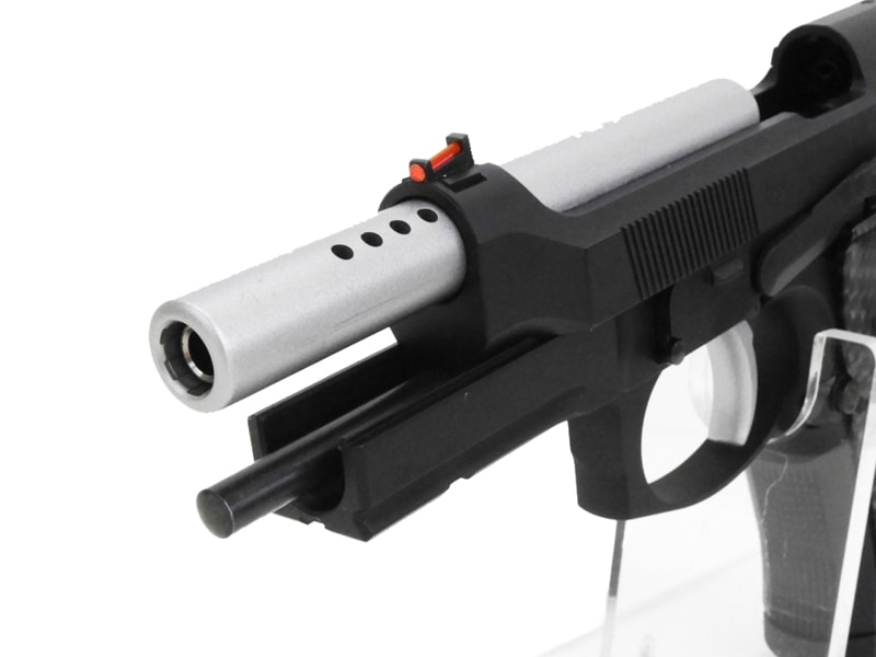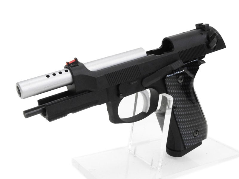 フレームはダストカバー部分にウエポンライトなど各種アクセサリーの装着に対応する20mm幅のピカティニレールを装備したM9A1タイプを採用。