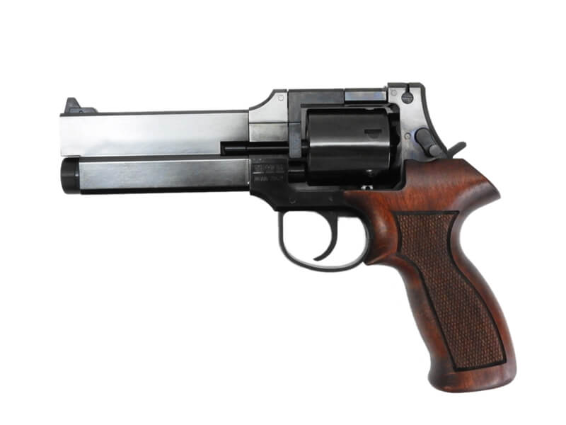 架空の銃のようだが、実際にイタリアのマテバ社で設計・製造・販売されていたモデルで通常のリボルバーと異なり、銃身が下部に設置されている事が大きな特徴。久しぶりの再販です!