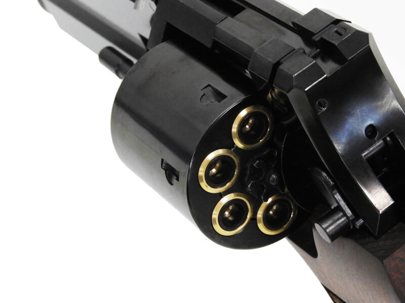 「Xカート」モデルは、安全対策を強化したシリンダー構造により、実弾に近い全長と形状のカートリッジを使用可能。リボルバーの醍醐味のひとつであるカートリッジの装填・排出アクションがより楽しめます。