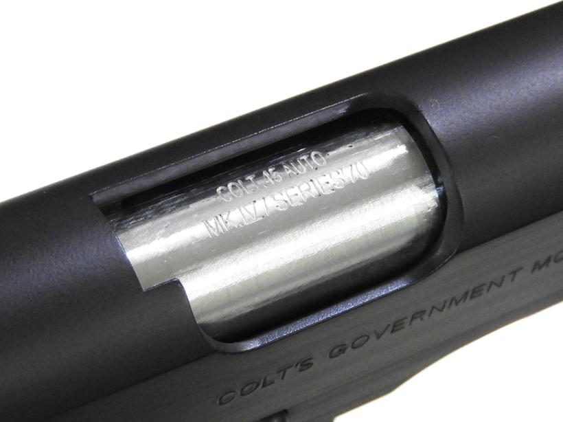 スライド側面の刻印を、金型ではなく成型後に打刻。実物同様の工程によって、よりリアルさを増しています。また、刻印にはスモールアドレス型を、シリアルナンバーには「最終型70B35745」を採用しました。